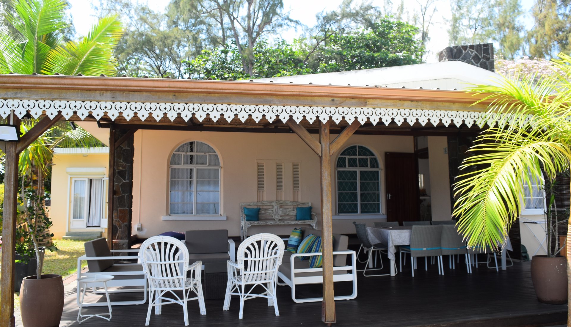 Case Paradis is a Mauritian word which means ¨Paradise house¨ located in Pereybere. This charming house is set in a private garden bordered with pink bougainvillea with direct access to a white sandy beach. You will be on one of the most appreciated beaches of Mauritius, which is the the public beach of Pereybere well known for its excellent swimming. The living area open on a well furnished terrace which faces the turquoise lagoon. Various restaurants and shops can be found in the neighbourhood and the center of Grand Bay is less than 10 minutes driving distance from the villa.