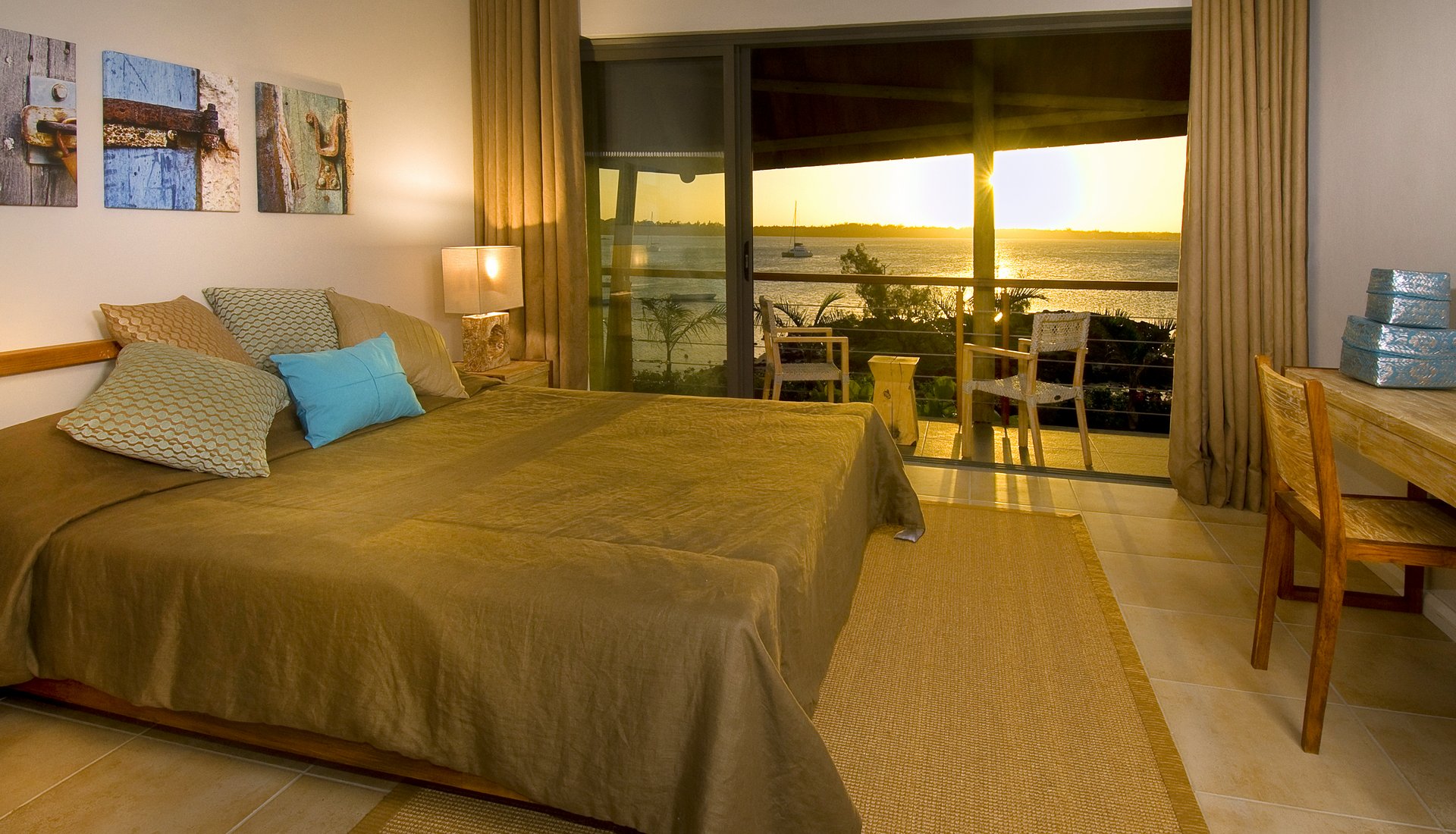 These beautiful waterfront villas in Kalodyne on the north coast of Mauritius offer the right balance. Simplicity and luxury. Tranquillity and activities. With a unique location at the end of a small islet peninsula only a stone’s throw from the local fishing village of Grand Gaube, the fully furnished villas provide a secluded natural setting for the perfect holiday escape. The ground floor veranda and first floor balcony offer spectacular panoramic views of the lagoon, overlooking the majestic Coin de Mire and other offshore islands. Relax in your own biodesign pool and enjoy breath taking sunsets at the end of each day. We look forward to welcoming you to Baladirou soon and making your experience on these sunny shores a memorable one.