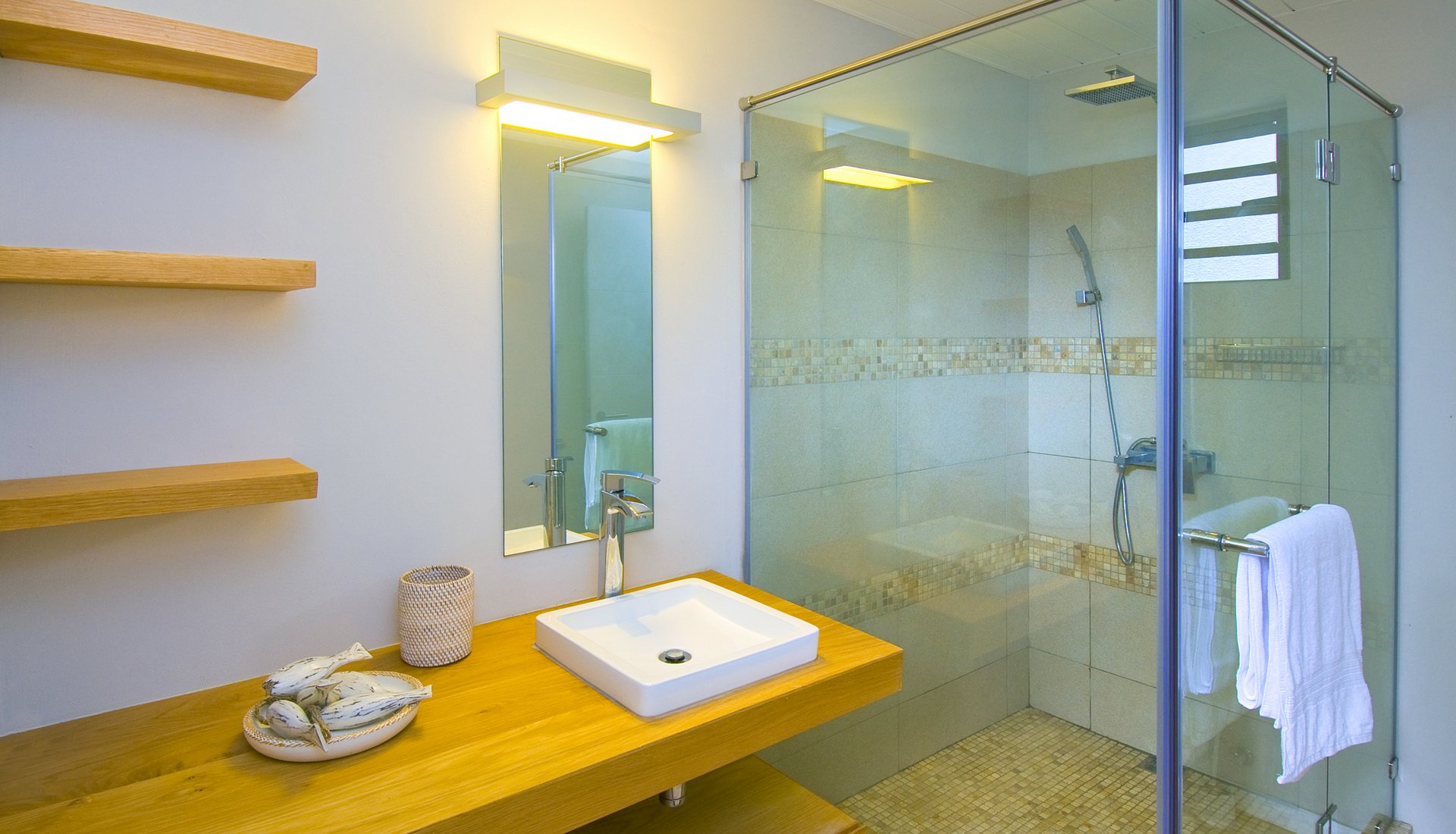 1 air-conditioned bedroom on the ground floor with sea view and sharing shower no.2