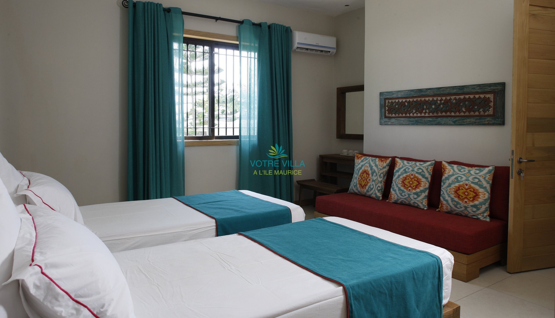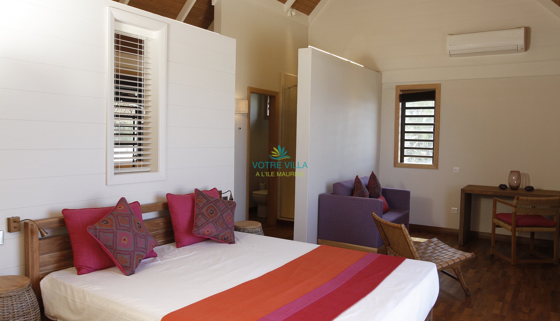 Dune 2 is a high standard villa located directly on the beach of Poste Lafayette with breathtaking views on the ocean. The decoration is a subtle blend of rock, thatch, wood and concrete. The comfortable gazebo and overflowing swimming pool are really inviting. This part of the island is still wild and natural where you will let yourself be carried away by the gentle breeze of the filao trees. It is the ideal place to spend a relaxing and peaceful holiday. The villa comprises of 3 air-conditioned and tastefully decorated bedrooms with en suite bathrooms.