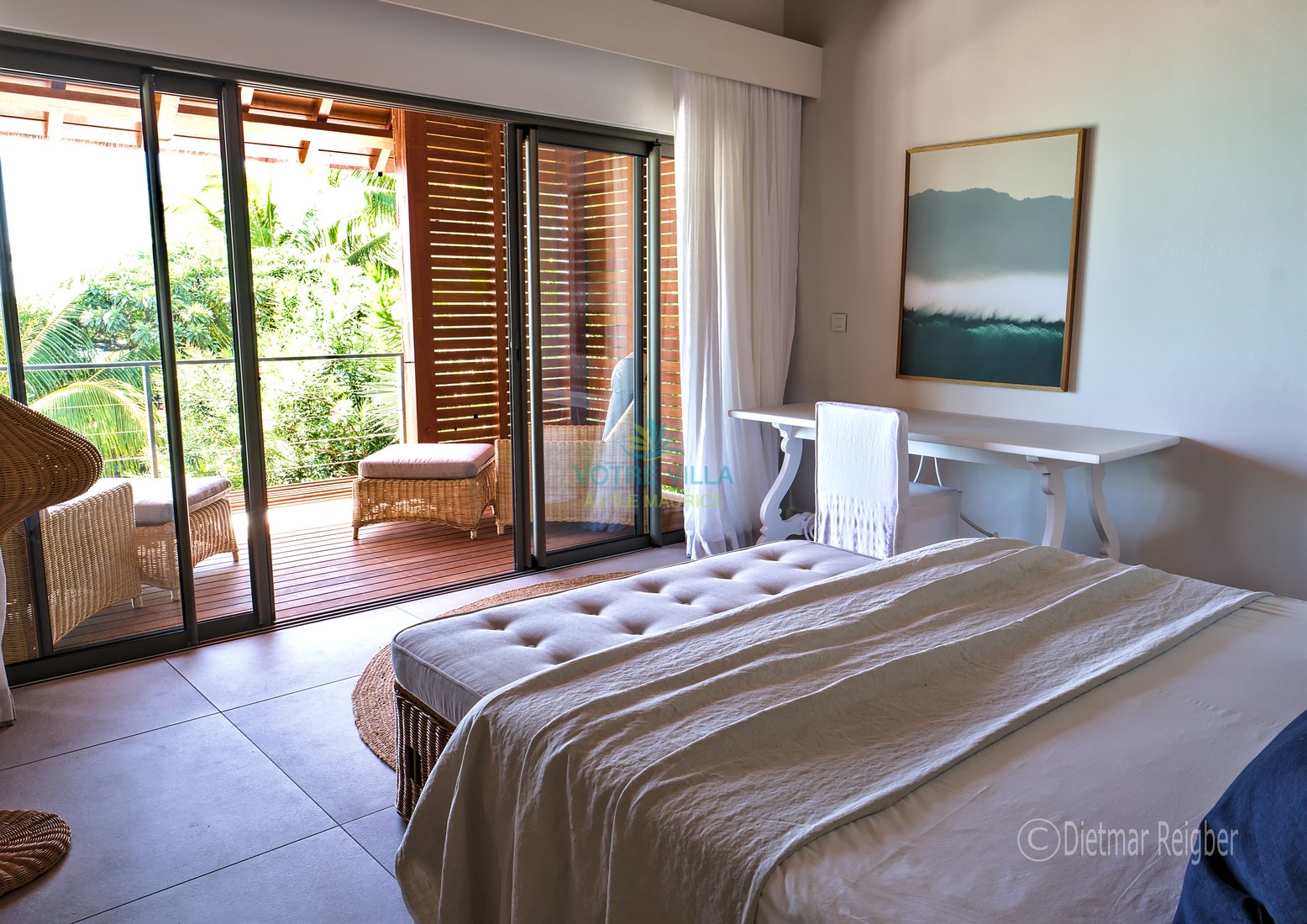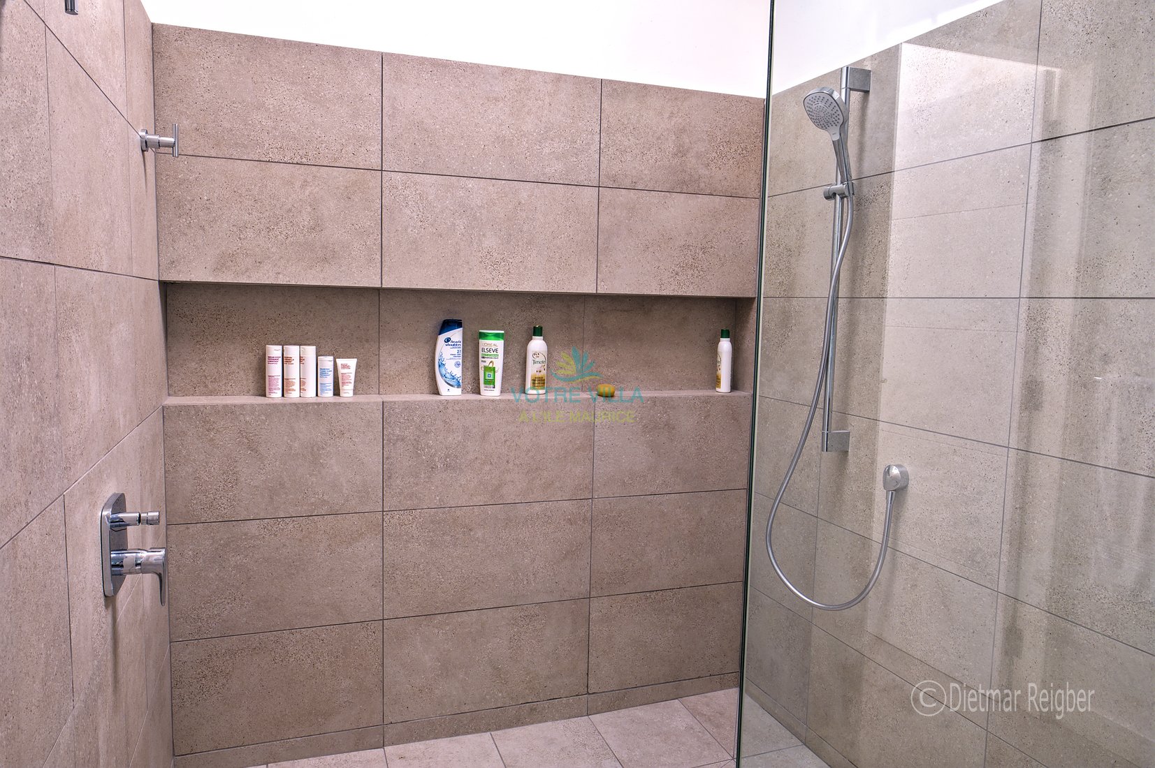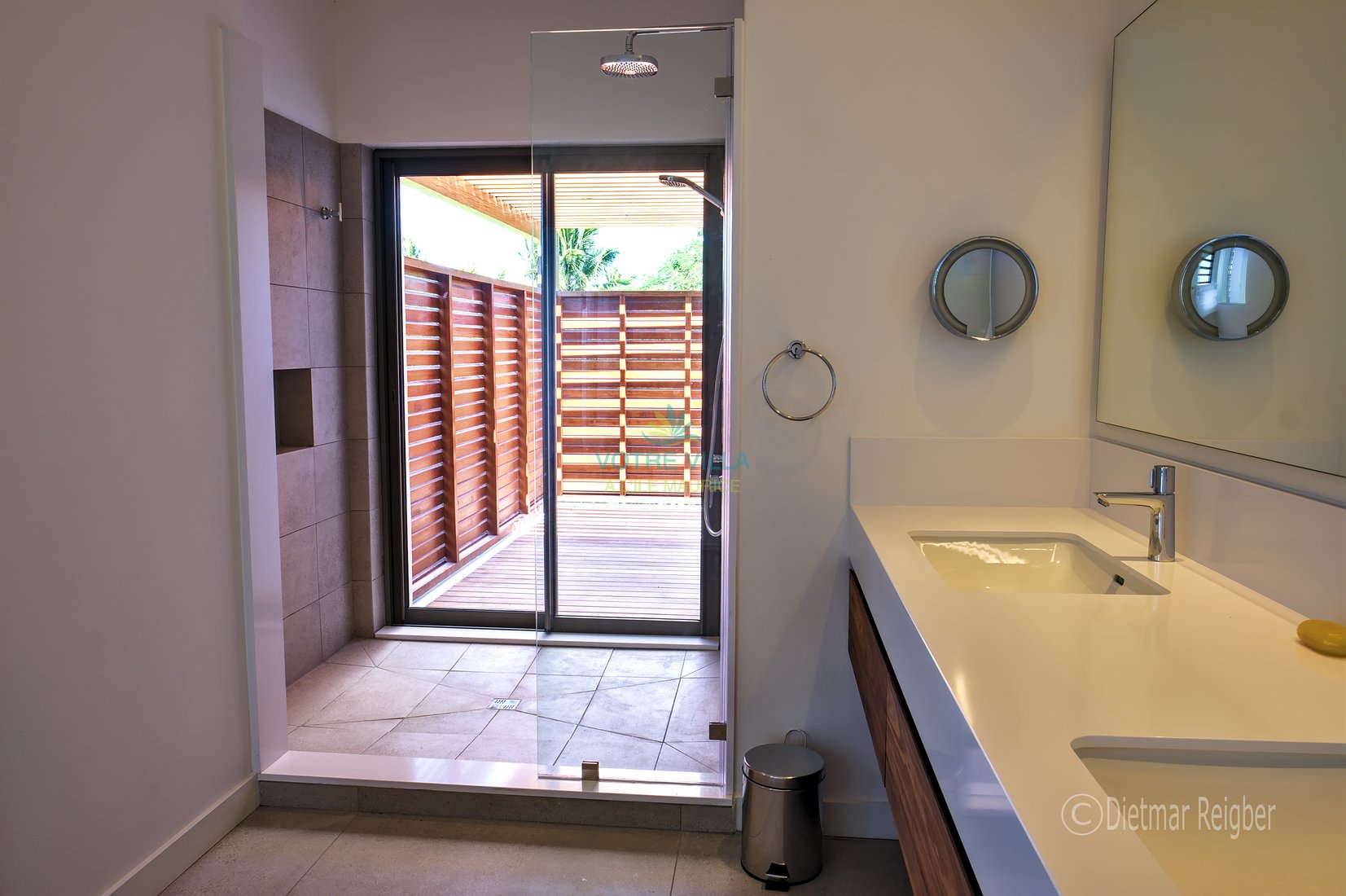 1 double climatisée avec salle de bains en suite no.4 (2 vasques, douche, wc) et vue mer et balcon privée